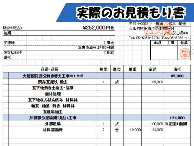 ㎡単価・使用部材・処分費の有無まで書かれている見積書を出す業者は透明性が高いです。
